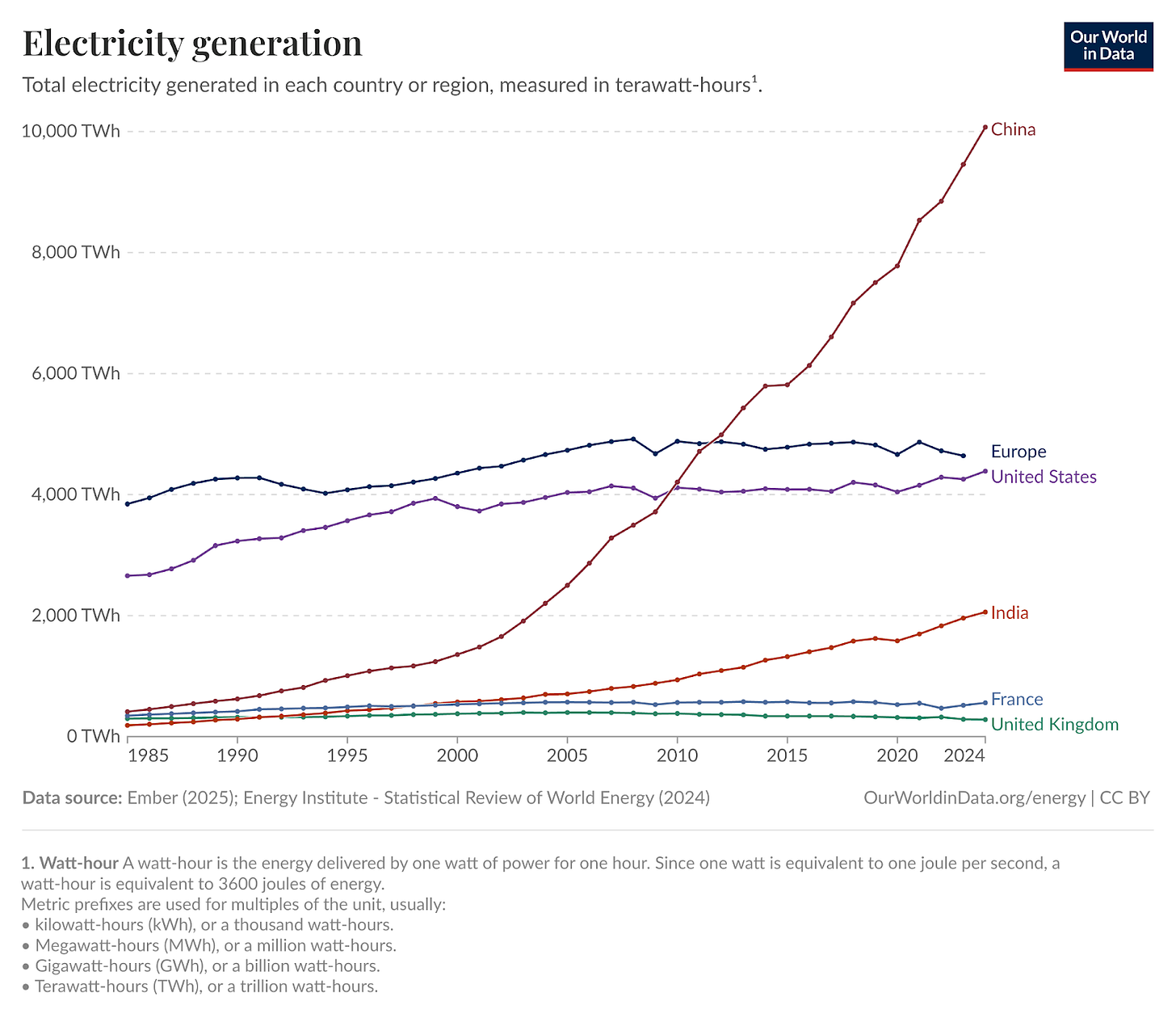 Electricity is the master input: everything is downstream from it. When energy is cheap, the cost of making, moving, and thinking all fall in tandem. Manufacturing becomes more competitive, entire industries reorient toward regions where power is abundant and low-cost, and households benefit too. Cheap electricity doesn’t just reduce bills, it reorganises economies. It attracts factories, infrastructure, and capital. It sets the floor for productivity and the ceiling for ambition. If you want faster growth, cheaper power is the most reliable place to start.